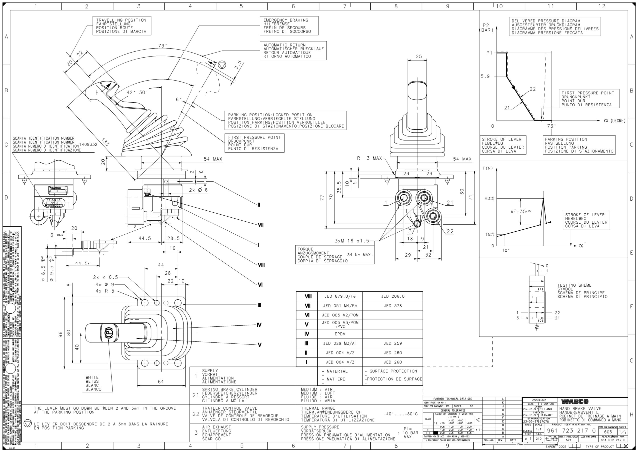 TKL39045 - Valvula Freno De Mano Manija T